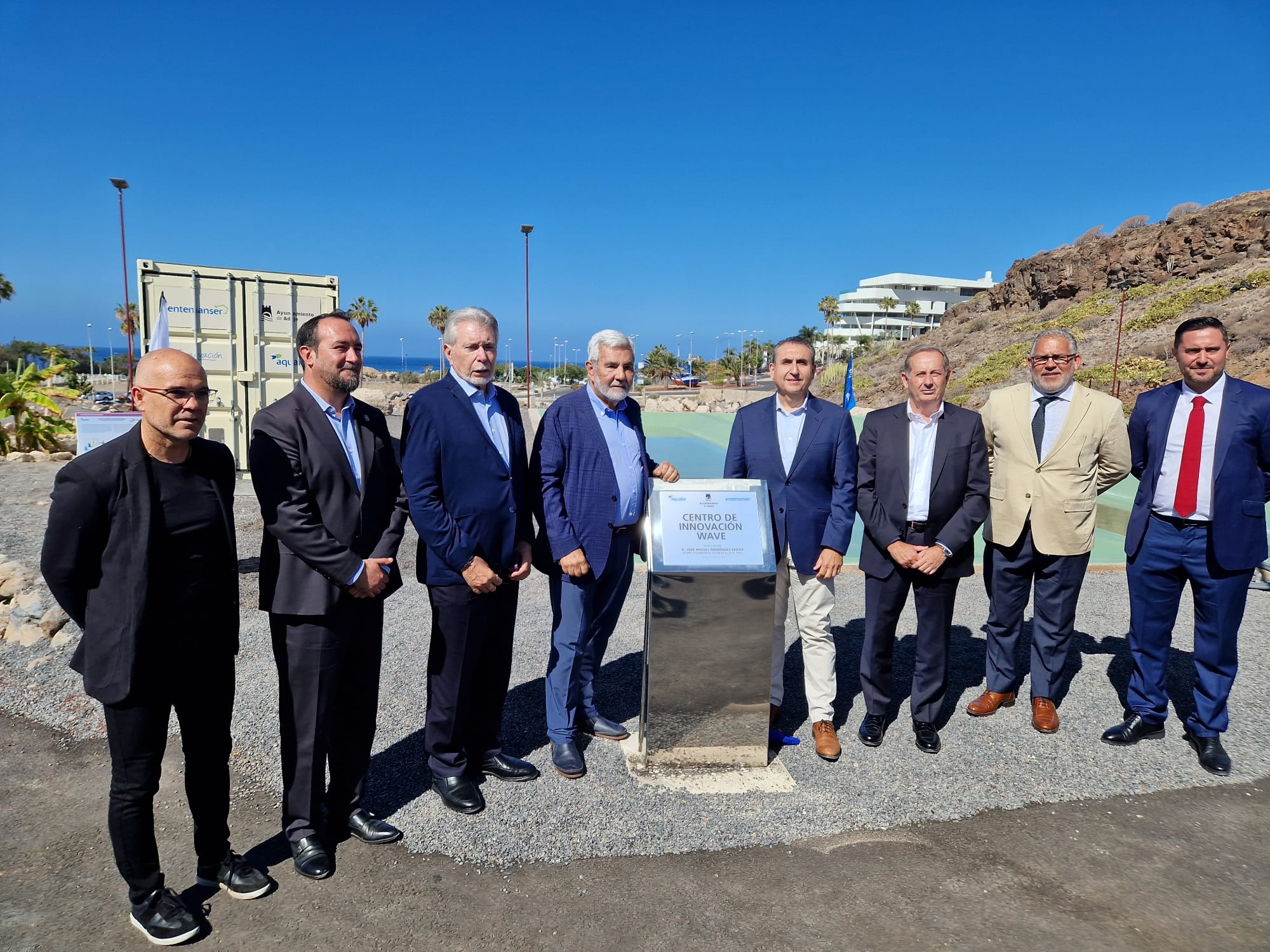 El acto se ha hecho coincidir con la celebración del XIV Congreso Internacional de la Asociación Española de Desalación y Reutilización (AEDYR), que se ha celebrado esta semana en Santa Cruz. Unas 100 personas, entre ellas varios delegados internacionales, han asistido al evento de inauguración del centro WAVE, que ha presidido el alcalde de Adeje, José Miguel Rodríguez Fraga, y ha contado con la presencia de diversas autoridades, así como responsables de Aqualia-Entemanser: Higinio Martínez, director territorial del sur de España; Pedro Rodríguez, director de Desarrollo Estratégico y Sostenibilidad; Enrique Reina, director de la delegación Canarias; y Víctor Monsalvo, responsable del Área de Ecoeficiencia en el departamento de Innovación y Tecnología.