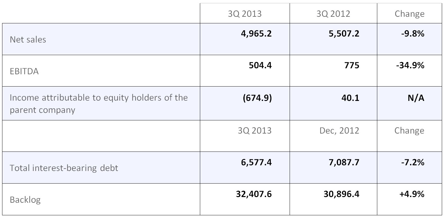 Nevertheless, although the impact of the restructuring measures is only beginning to be felt, the EBITDA margin improved in all areas, reaching 10.2%, and this steady recovery should continue into 2014. The improvement was particularly notable in the Construction and Cement areas as a result of the initial restructuring measures adopted, which will have a greater impact on earnings in the next few quarters.