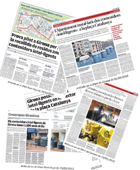 In the city of Girona, a new waste collection system has been implemented, previously tested in a pilot trial in a single container area in the same city, where the usual configuration of containers for the five fractions has been replaced by a configuration of one container for the organic fraction, one container for sanitary textiles and a multi-fraction container, which each day is allocated to a different fraction (paper/cardboard, packaging, glass and residual fraction) following a predefined allocation schedule. In addition, intelligent containers with access control and volumetric sensors have been installed. In the future, on-board software is planned to allow the electronic management of dynamic routes by means of route optimisation algorithms, incident entry, remote remote control, localisation and communications.