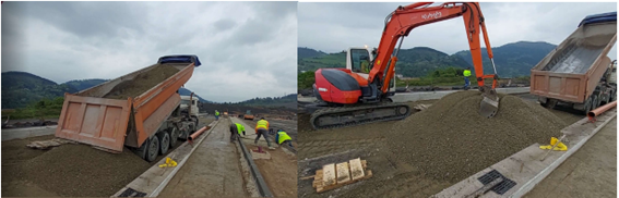 - The low resistance to fragmentation of incineration slag makes it necessary to mix it with other, more resistant materials, which entails additional logistical management. In addition, during the execution of the full-scale pilots, difficulties arose in the compaction of the material, requiring longer than usual execution times.