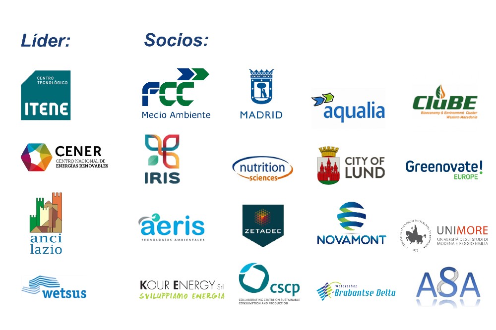 Es un proyecto de la convocatoria Horizon 2020, liderado por ITENE (ES), y en el que, además del Grupo FCC (representado por FCC Medio Ambiente y Aqualia), participan entidades de distintos países de la Unión Europea: AERIS (ES), ASA (GE), CENER (ES), CLuBE (MK), CSCP (GE), Greenovate! Europe (BE), KOUR (IT), Anci Associazione Regionale Comuni Italiani Lazio (IT), City of Lund (SW), AYUNTAMIENTO DE MADRID (ES), Novamont (IT), Nutrition Sciences (BE), Universidad de Módena (IT), IRIS (ES), WETSUS (NL), Waterschap Brabantse Delta (NL) y Zetadec (NL).